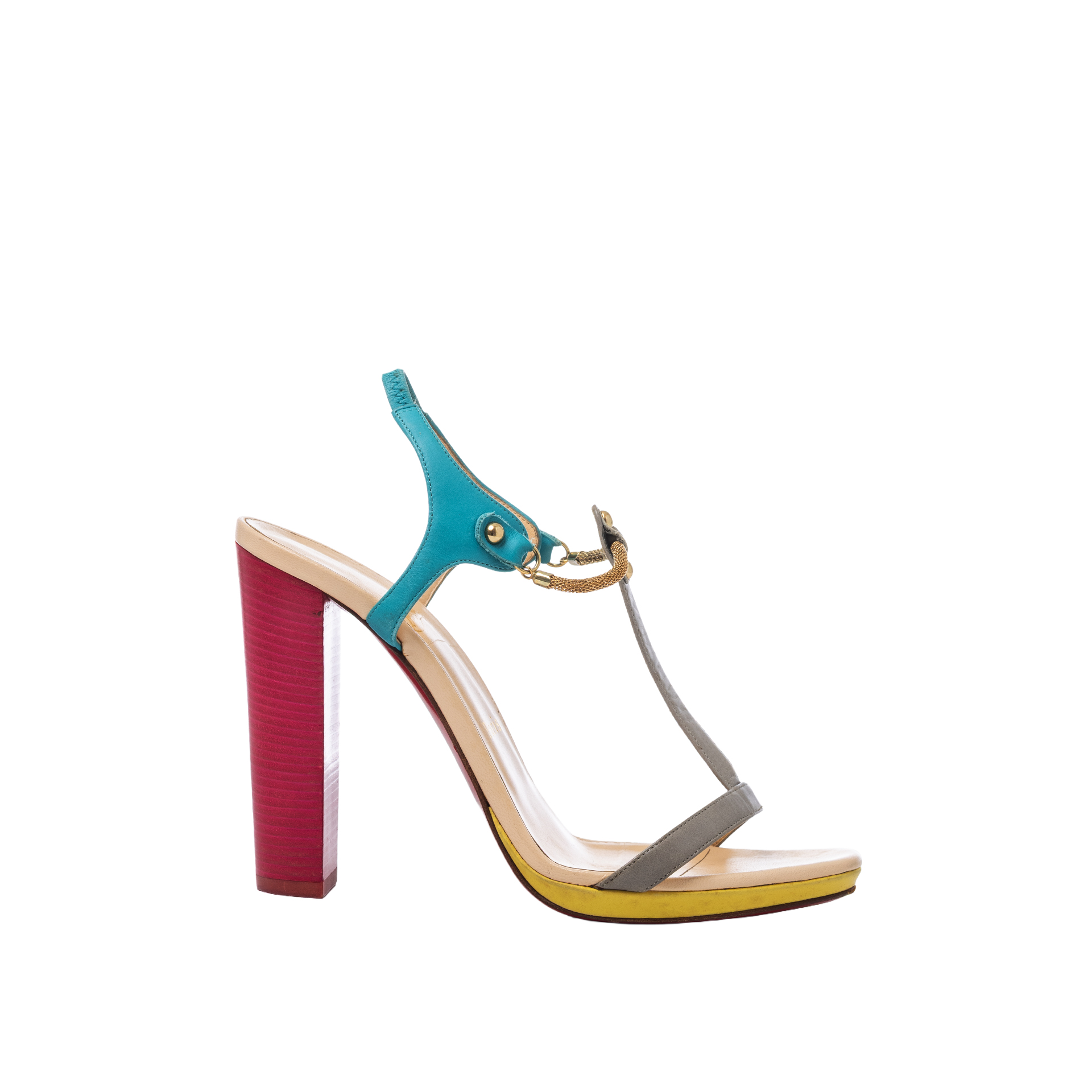CHRISTIAN LOUBOUTIN SYLVIETA PINK-GOLD SANDAL HEELS 11CM SIZE 38,5