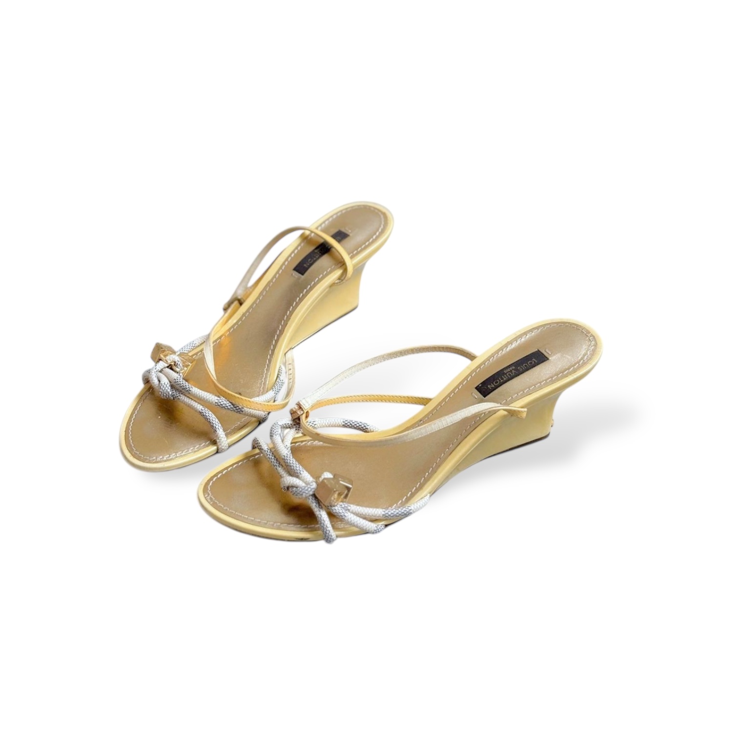 NBU LOUIS VUITTON WEDGE SANDAL HEELS DAMIER AZUR 7 CM SIZE 38